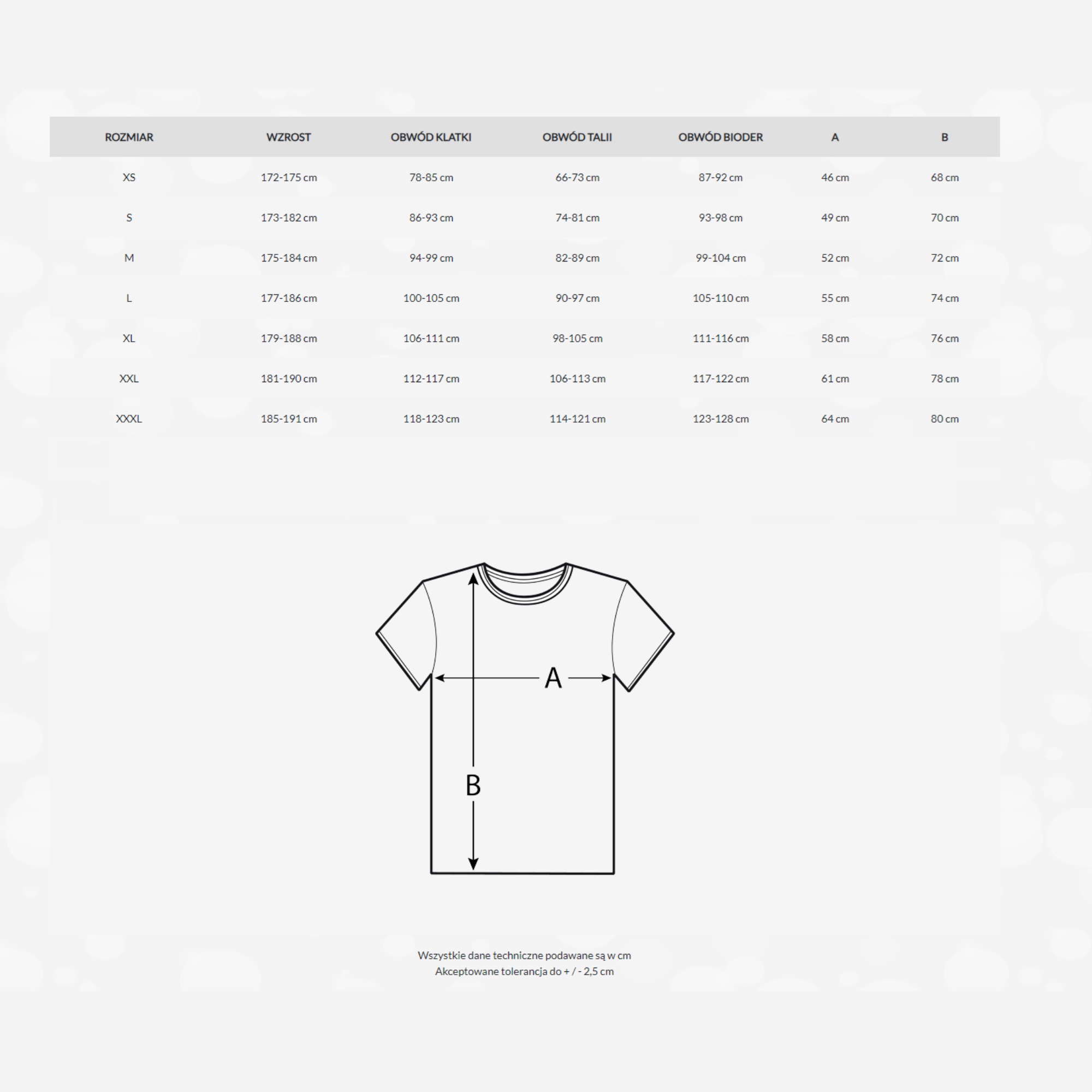 Tabela rozmiarów koszulki